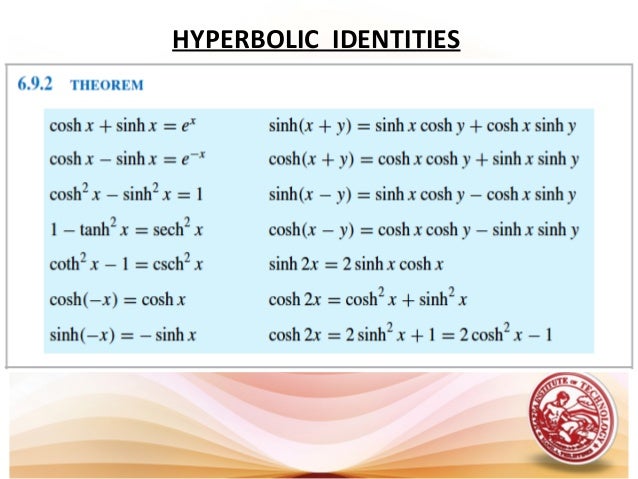 List Of Derivatives Of Hyperbolic And Inverse Hyperbolic Functions