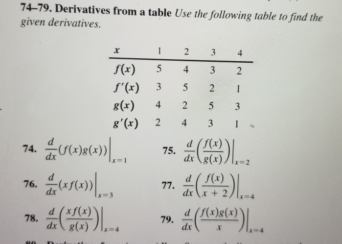 Given a table of values of a function find the best estimate for the derivative of a function at a given point. F 4 x 2 x5 10 x4 40 x3 120 x2 240 x. Because you are given everything you need in the form of a table or chart and all you have to do is plug in the numbers after applying a differentiation technique. Find the fourth derivative of.
