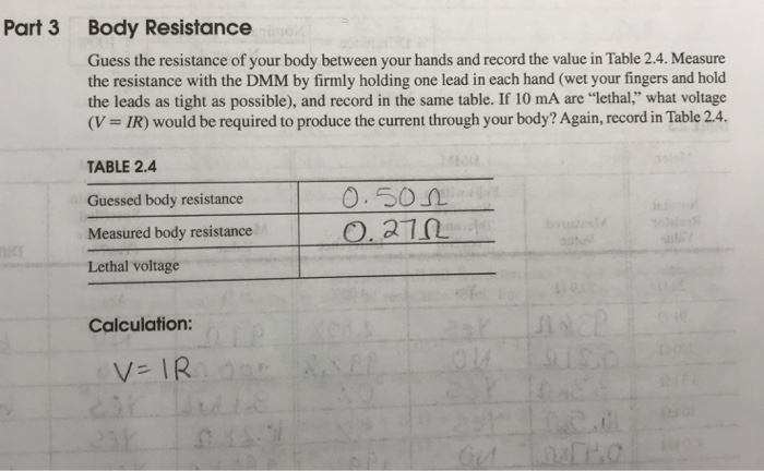Solved Part 3 Body Resistance Guess The Resistance Of You