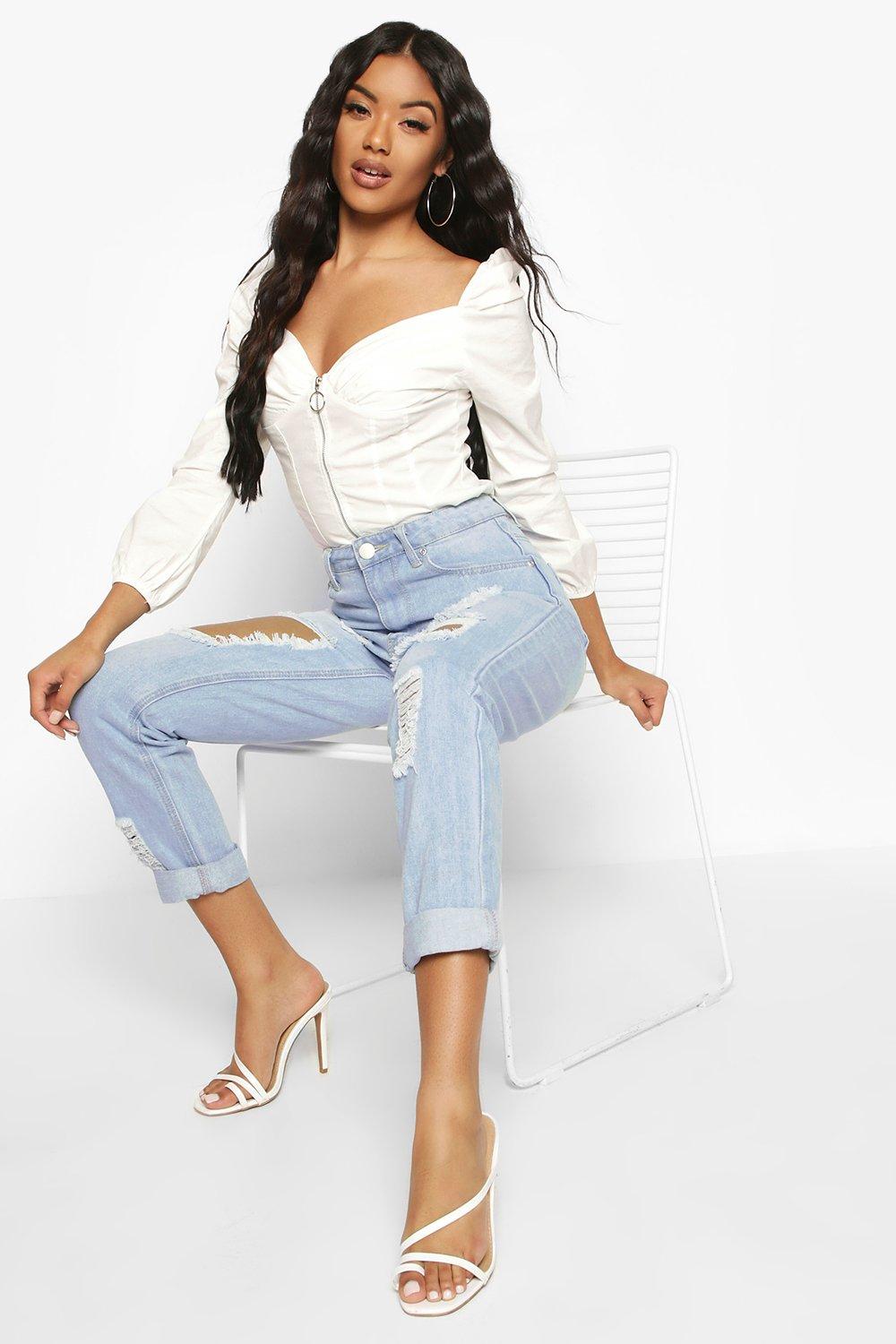 High Waist Distress Mom Jeans Boohoo