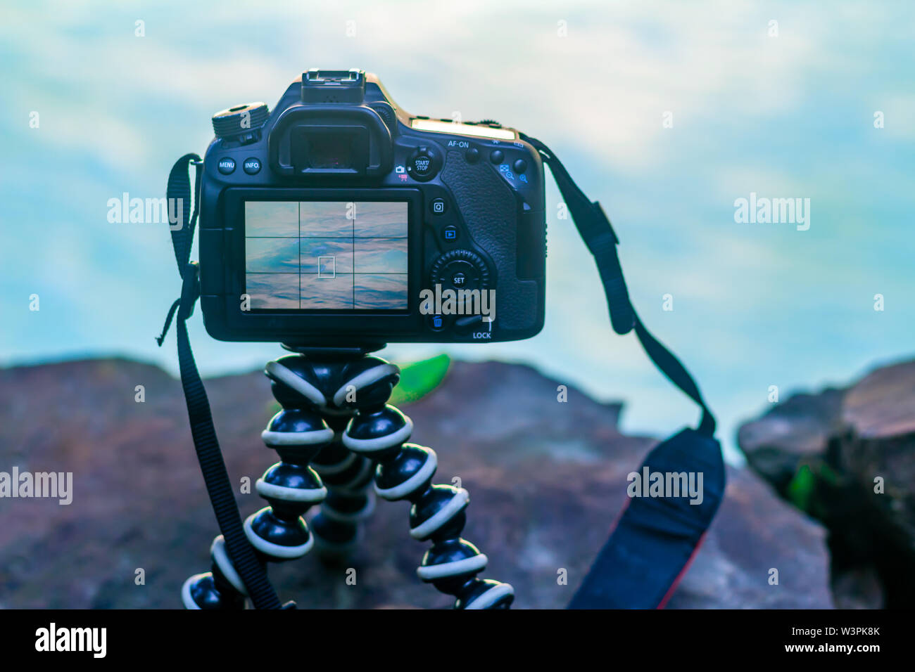 Led Screen Of Camera Placed On Tripod Ready To Take A Shot At The