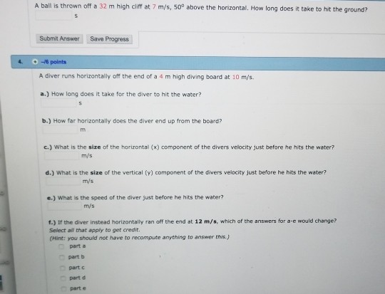 Solved A Ball Is Thrown Off A 32 M High Cliff At 7 M S 5