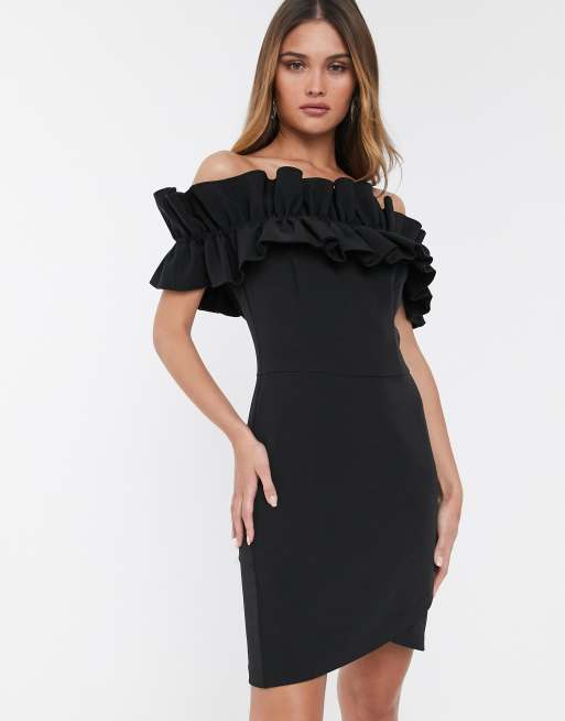 River Island Off Shoulder Dress With Ruffles In Black Asos